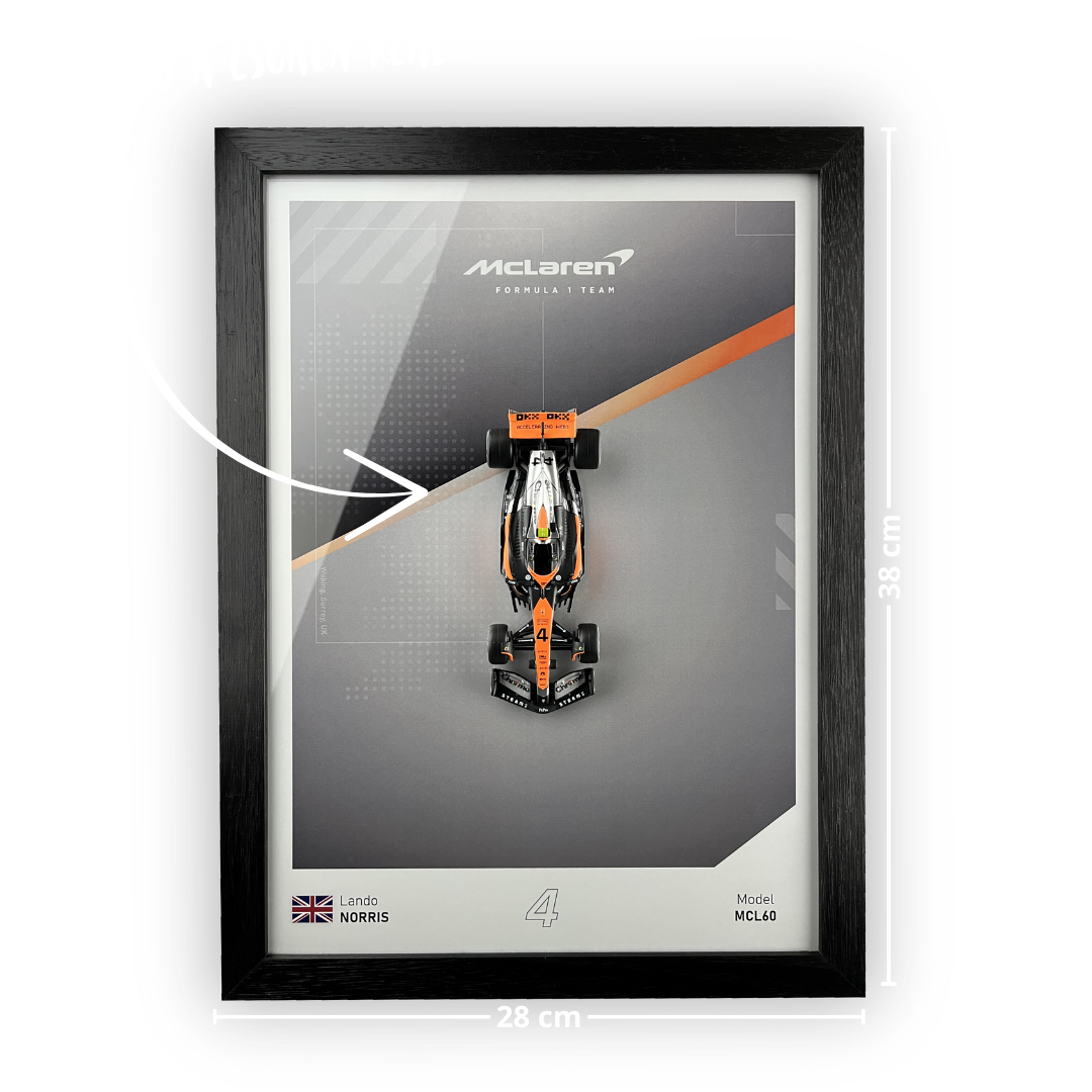 Reviví la pasión de la Fórmula 1 con este increíble cuadro coleccionable de Lando Norris y su McLaren MCL60. Diseñado para verdaderos fanáticos del automovilismo, este exclusivo cuadro con un modelo a escala 1:43 integrado, captura la esencia de la velocidad y la emoción del equipo naranja.